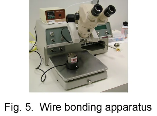The gold wire bonding equipment is shown in Figure 5 and the process parameters are described as follows: