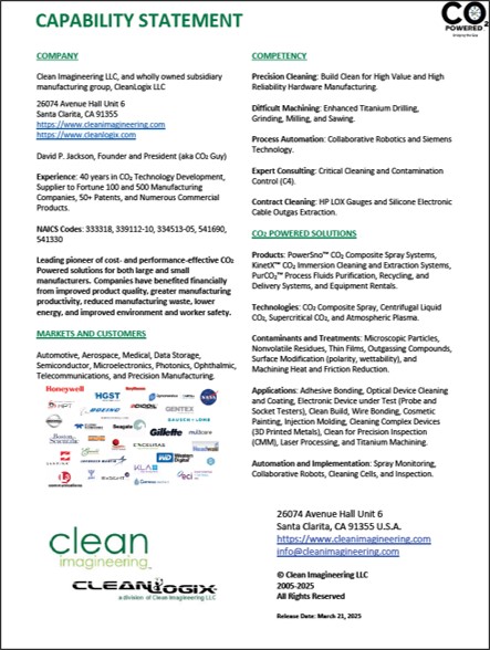Mr. Jackson began his career in 1979 at the bench analyzing pollution in wastes generated and discharged by industrial manufacturers and municipal wastewater treatment plants. Following graduation from college and working as group head of precision cleaning and contamination control at Hughes Aircraft Company, Technology Support Division, he developed and was awarded patents for new cleaning technologies based on environmentally-safe chemistries (CO2, H2O2, O3, Bio-based) for use during the manufacture of advanced aerospace products such as communications satellites and orbital weapon systems. While launching his first CO2 business in 1991, Mr. Jackson worked as an environmental engineering consultant, helping manufacturers reduce and treat regulated waste by-products generated by their production operations.