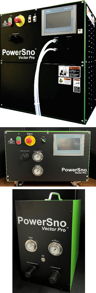 PowerSno™ systems provide CO2 spray treatment for a variety of manufacturing processes such as mechanical assembly, machining, grinding, sanding, polishing, adhesive bonding, welding, coating, and inspection, among many others. Manufacturing contamination such as hydrocarbon films, fine particles, ionic residues, nonvolatile residue (NVR), and machining heat are efficiently removed from surfaces. It is a replacement for Aqueous Cleaning, AK-225G, HFE, IPA, HCFC, HFC, TCE, nPB, and other cleaning solvents, and can be used, for example, to achieve cleanliness levels described in Product Cleanliness Levels and Contamination Control Program Standard IEST-STD-CC1246 (formerly MIL-STD-1246).
